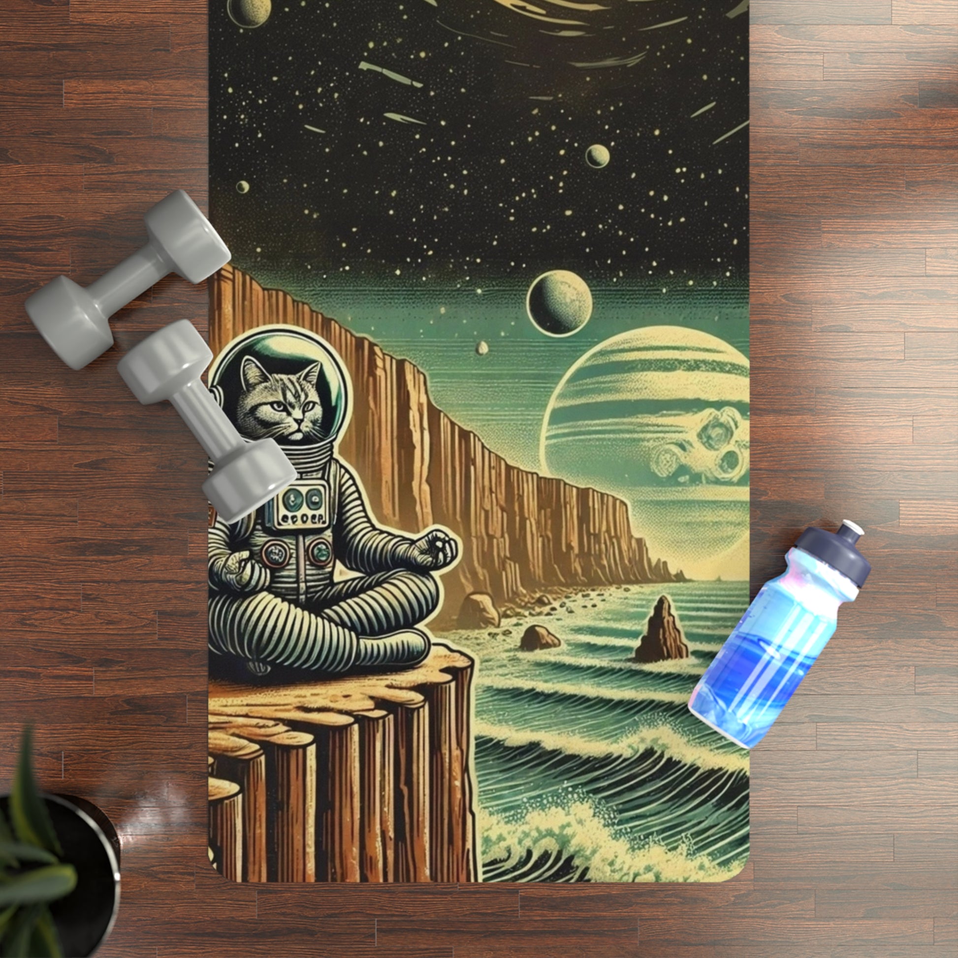 The Cliff 3 Astrocat Yoga Mat features a unique design of a cat exploring the cosmos on a cliff edge. This yoga mat provides a calming and peaceful atmosphere, perfect for yoga and meditation practices. Ideal for yoga enthusiasts, cat lovers, and anyone looking to add a touch of whimsy to their fitness routine. Great for birthdays, holidays, and everyday use.