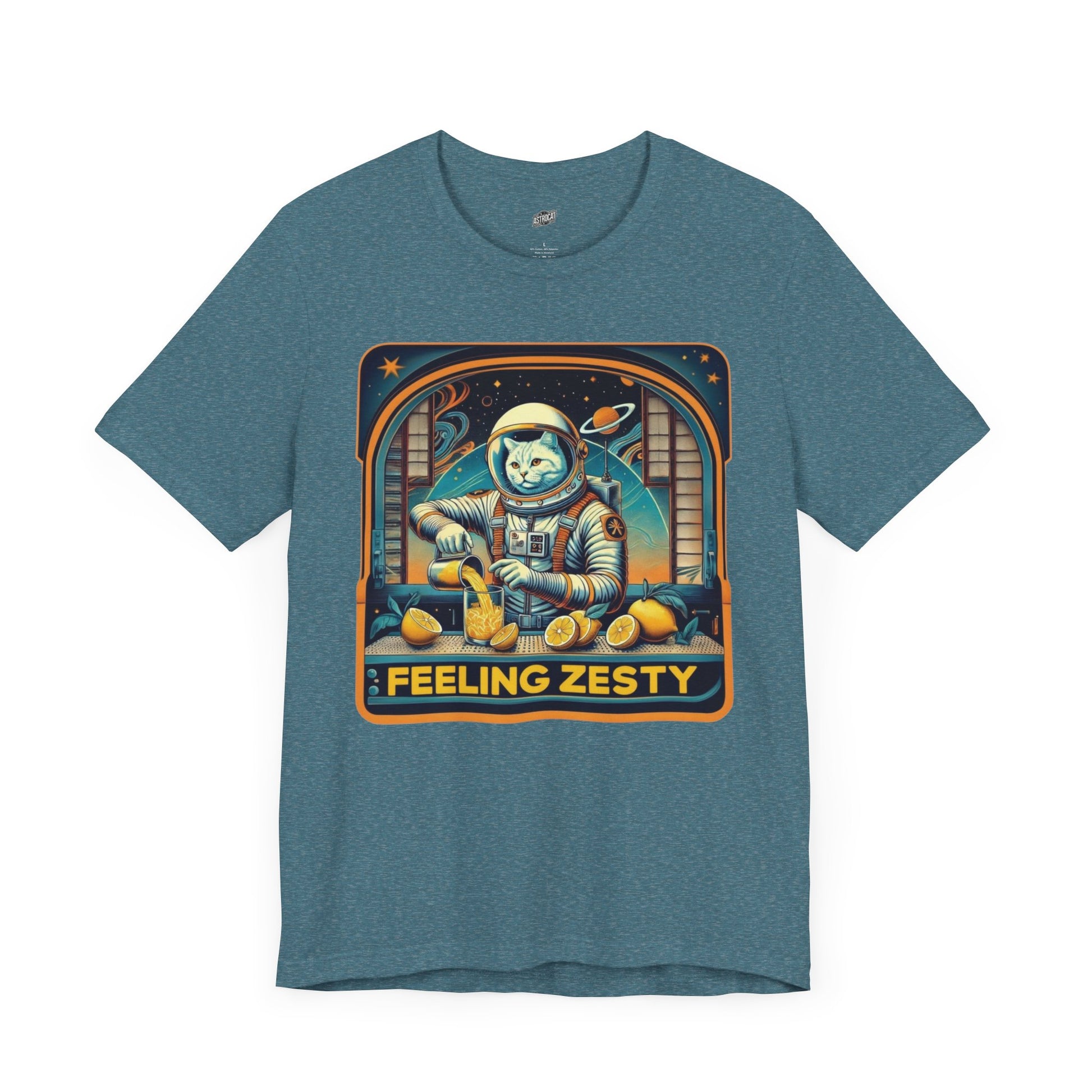 Feeling Zesty Astrocat Tee is a fun and quirky t-shirt perfect for those looking to add a playful touch to their outfits. This tee combines a lightweight fabric with a retail fit, making it ideal for both casual and semi-formal settings. The design features a cute astrocat, giving off a vibrant and energetic vibe. Perfect for cat lovers and those who enjoy unique and whimsical clothing. Great for everyday wear, as well as a fun addition to holiday celebrations and themed events.