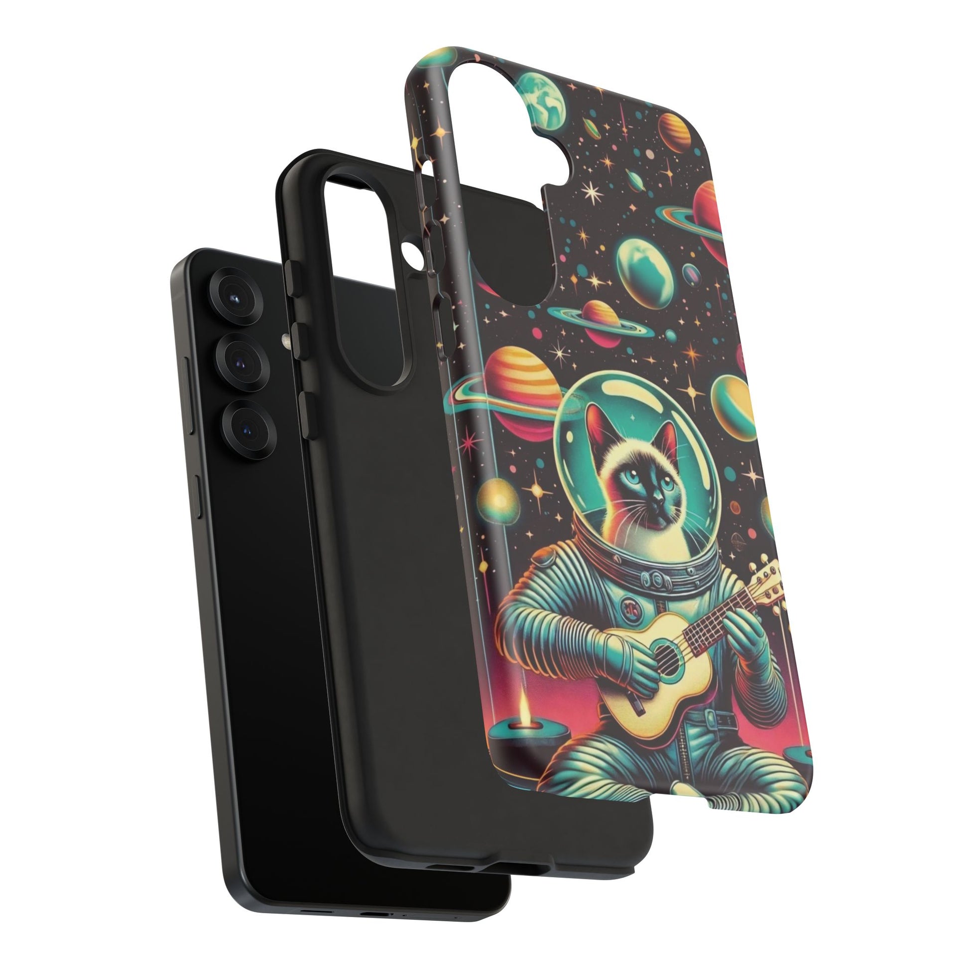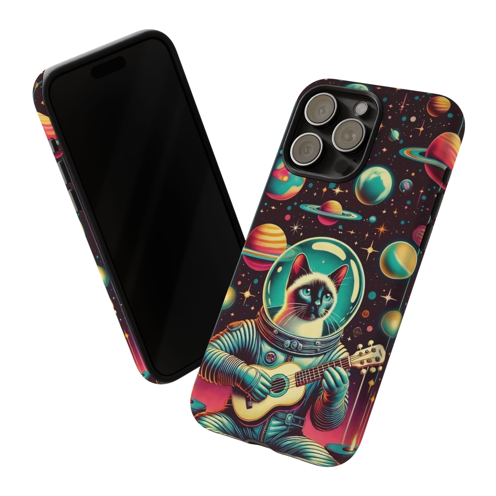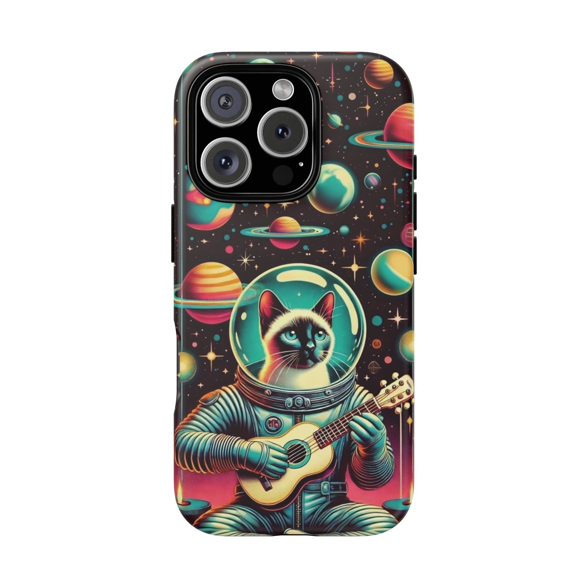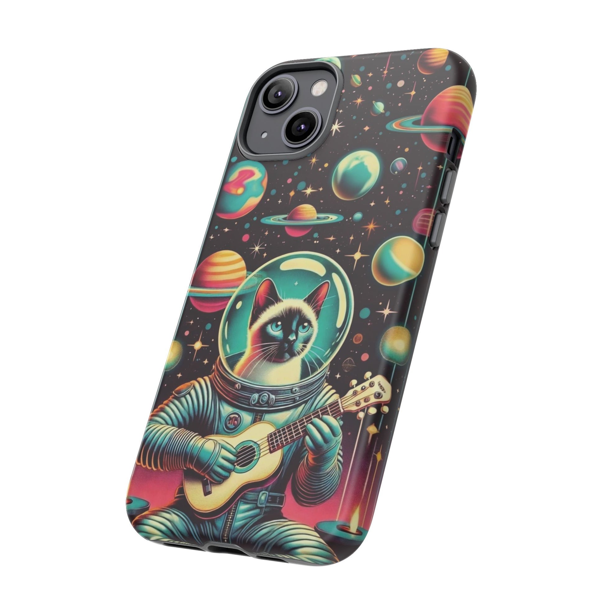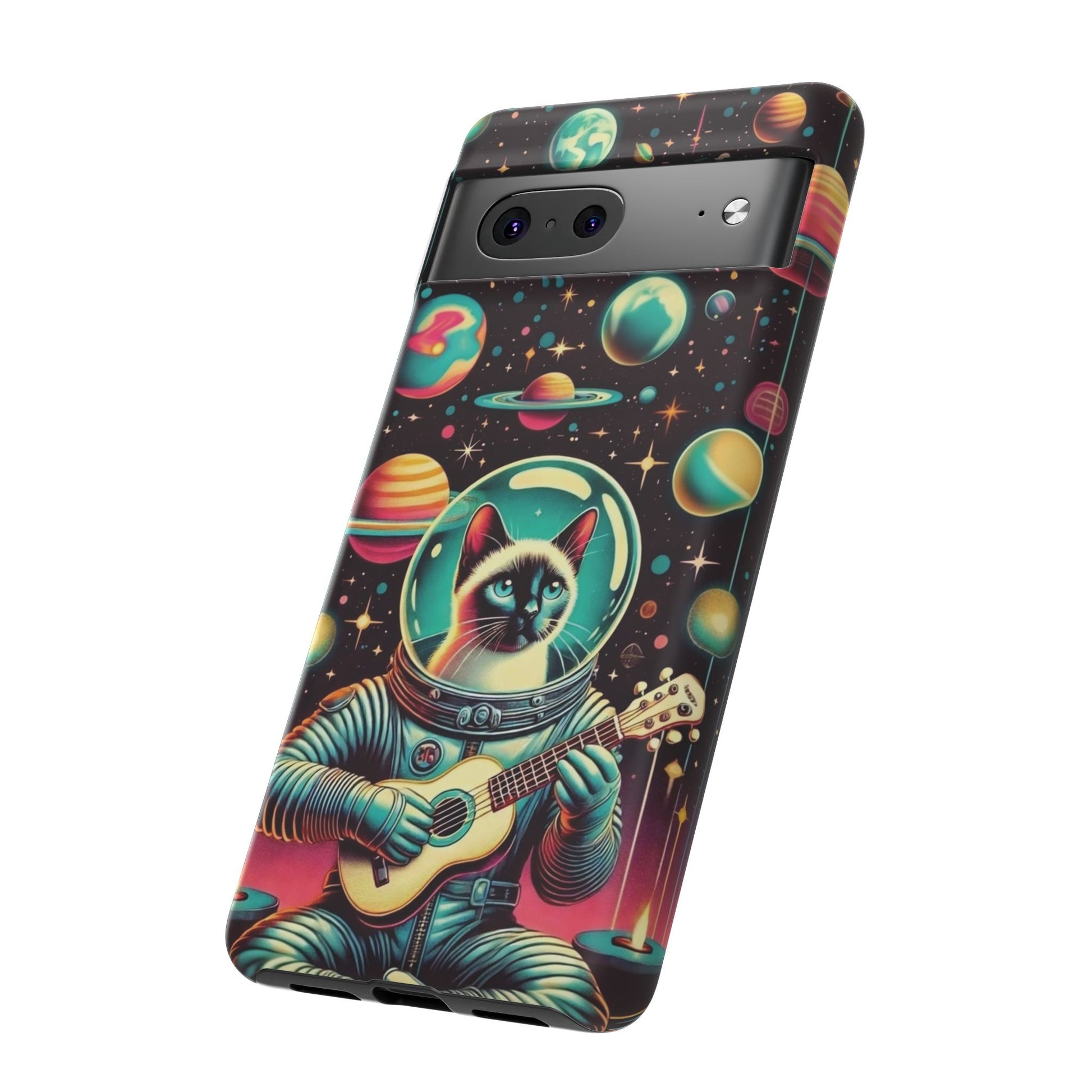 This Astrocat Guitar Phone Case features a unique design that combines cats and guitars, sure to appeal to music-loving cat enthusiasts. Made with durable materials and impact-resistant construction, this phone case provides excellent protection against drops and tears. Perfect for adults looking to show off their quirky style while keeping their phone safe and secure. Ideal for gift-giving during birthdays, holidays, or any special occasion.