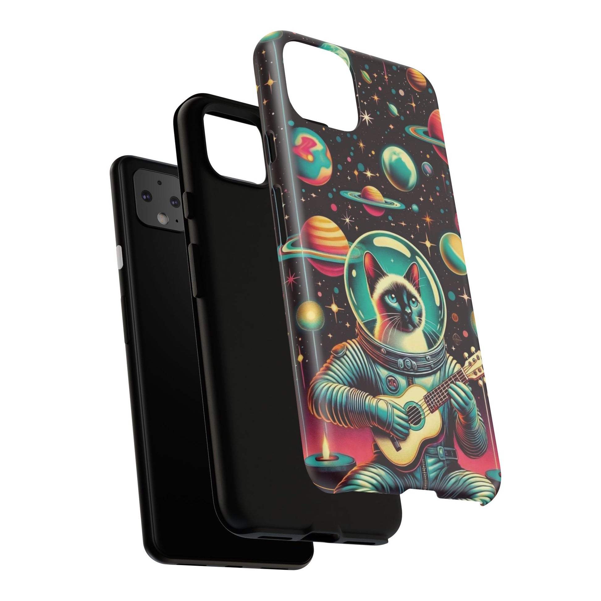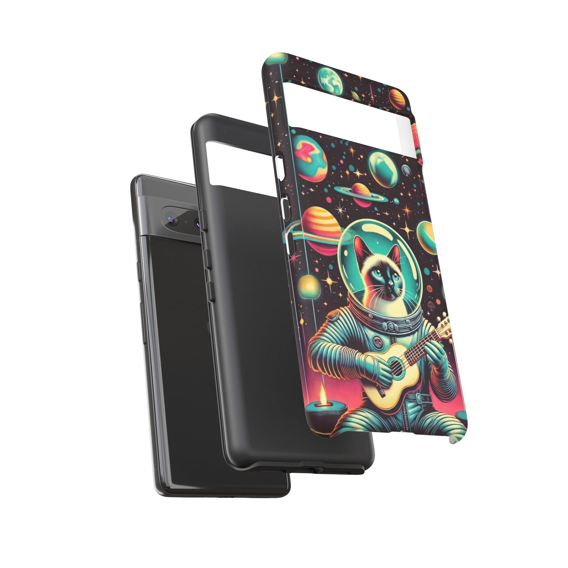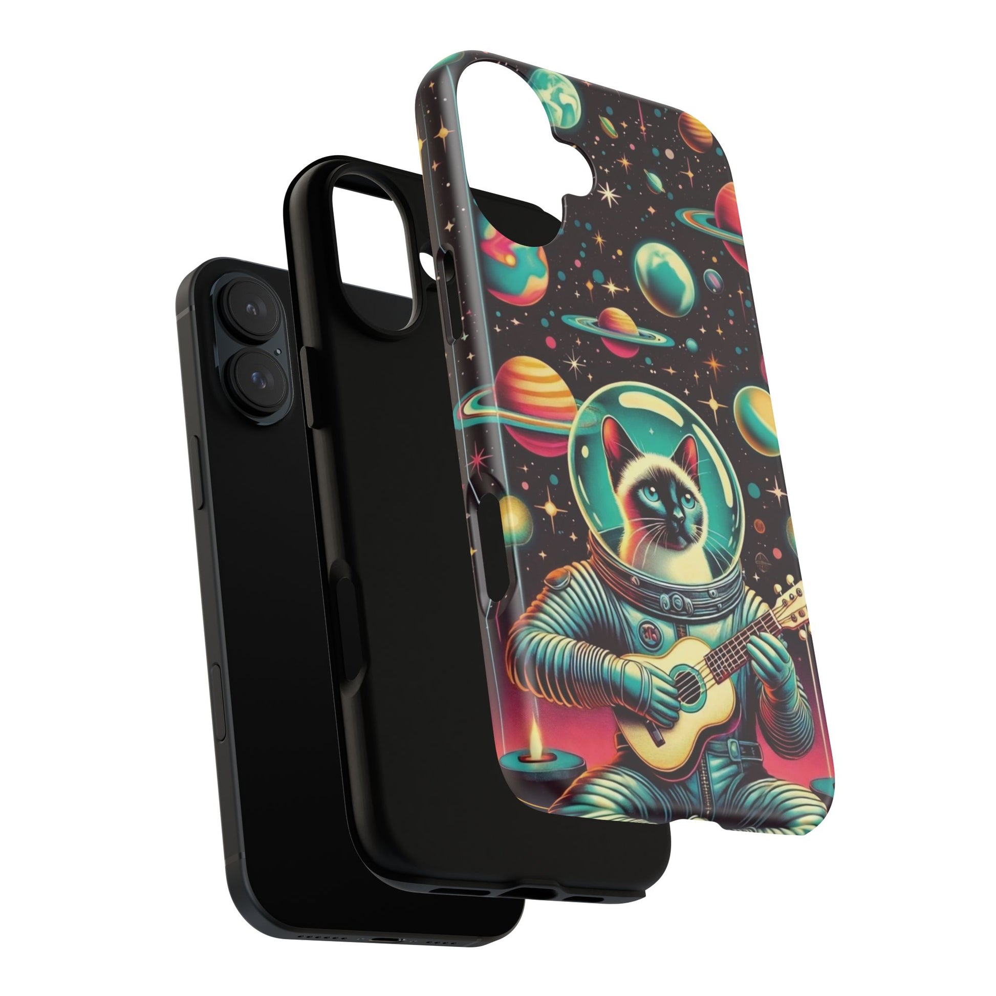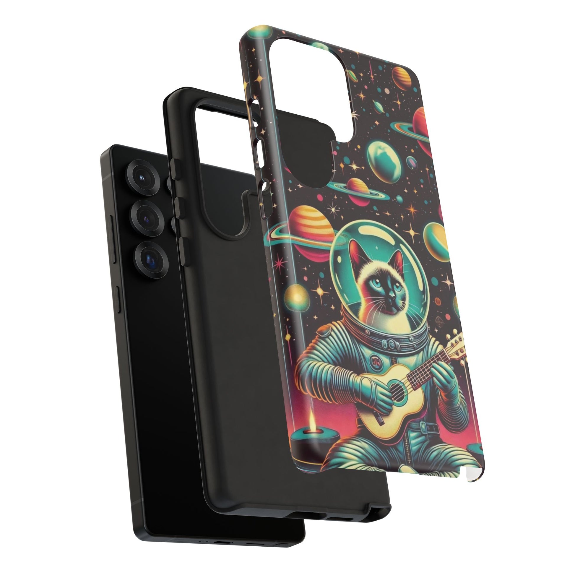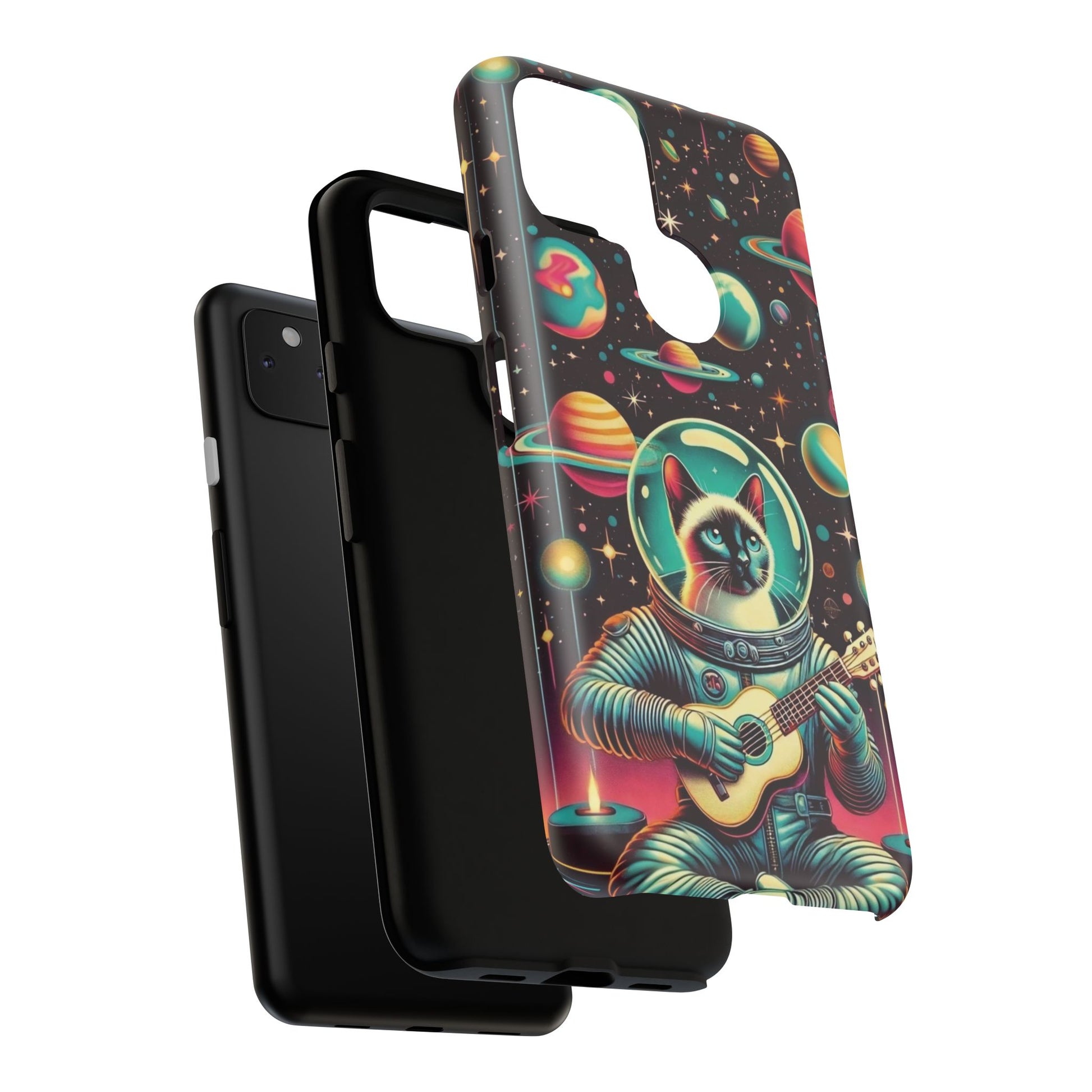 This Astrocat Guitar Phone Case features a unique design that combines cats and guitars, sure to appeal to music-loving cat enthusiasts. Made with durable materials and impact-resistant construction, this phone case provides excellent protection against drops and tears. Perfect for adults looking to show off their quirky style while keeping their phone safe and secure. Ideal for gift-giving during birthdays, holidays, or any special occasion.