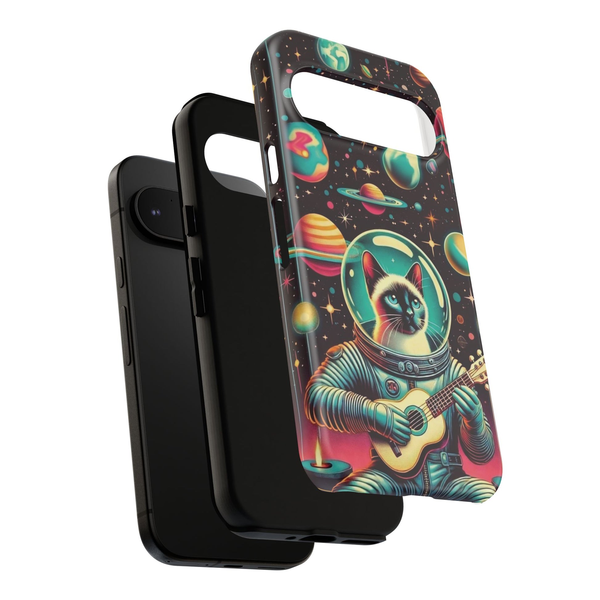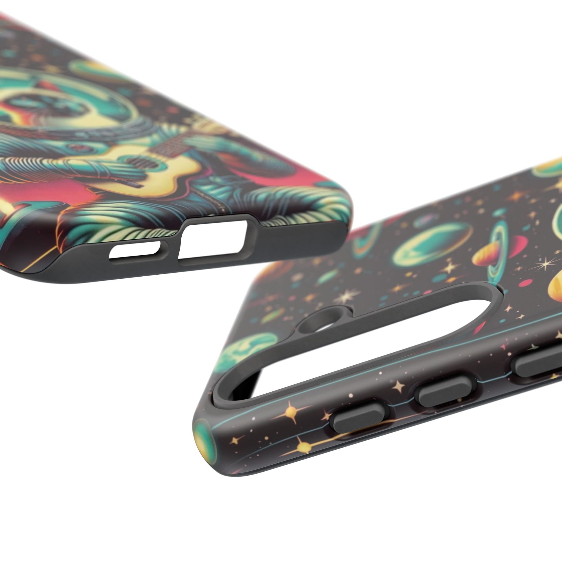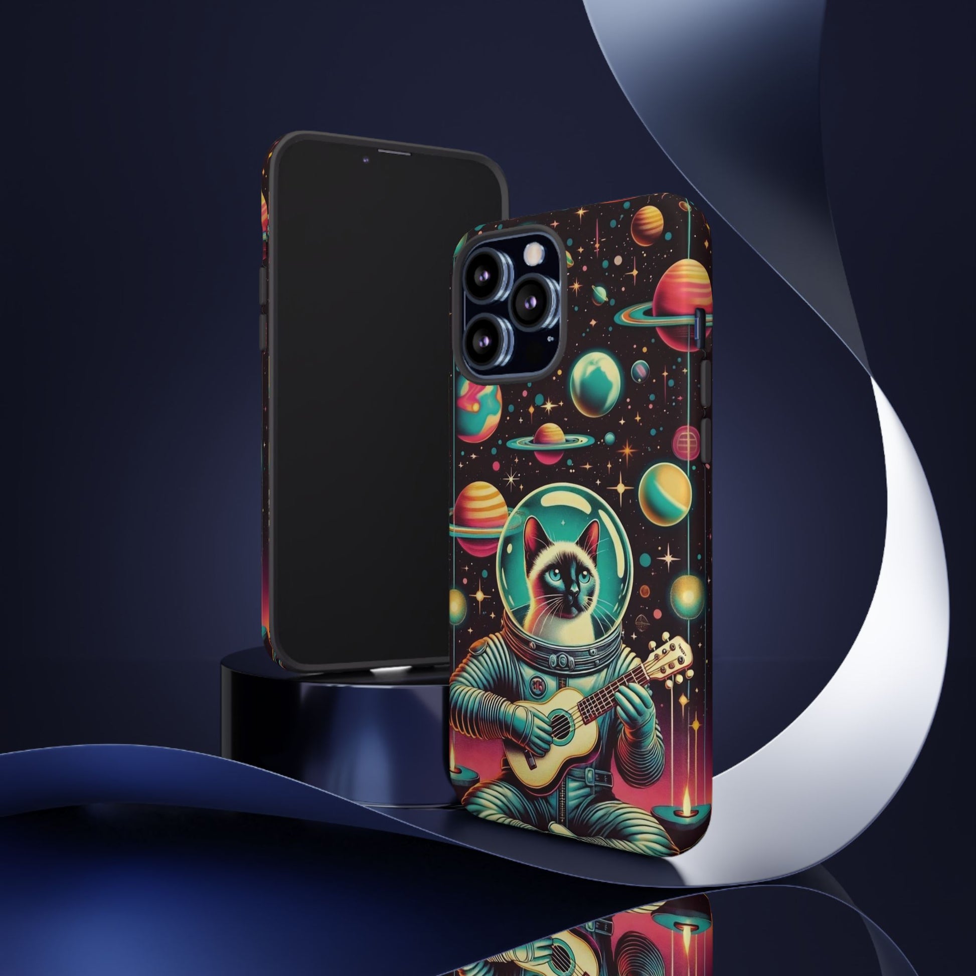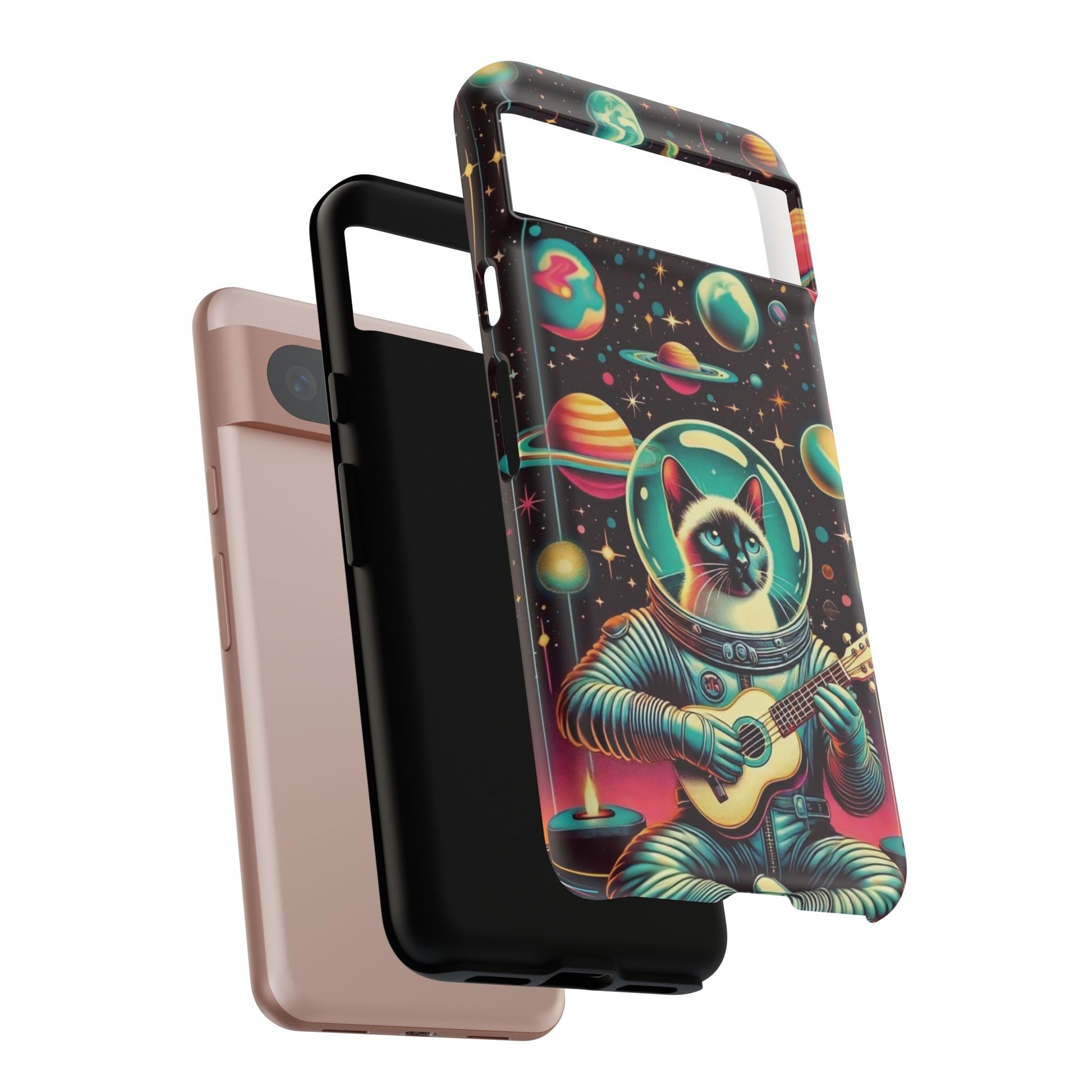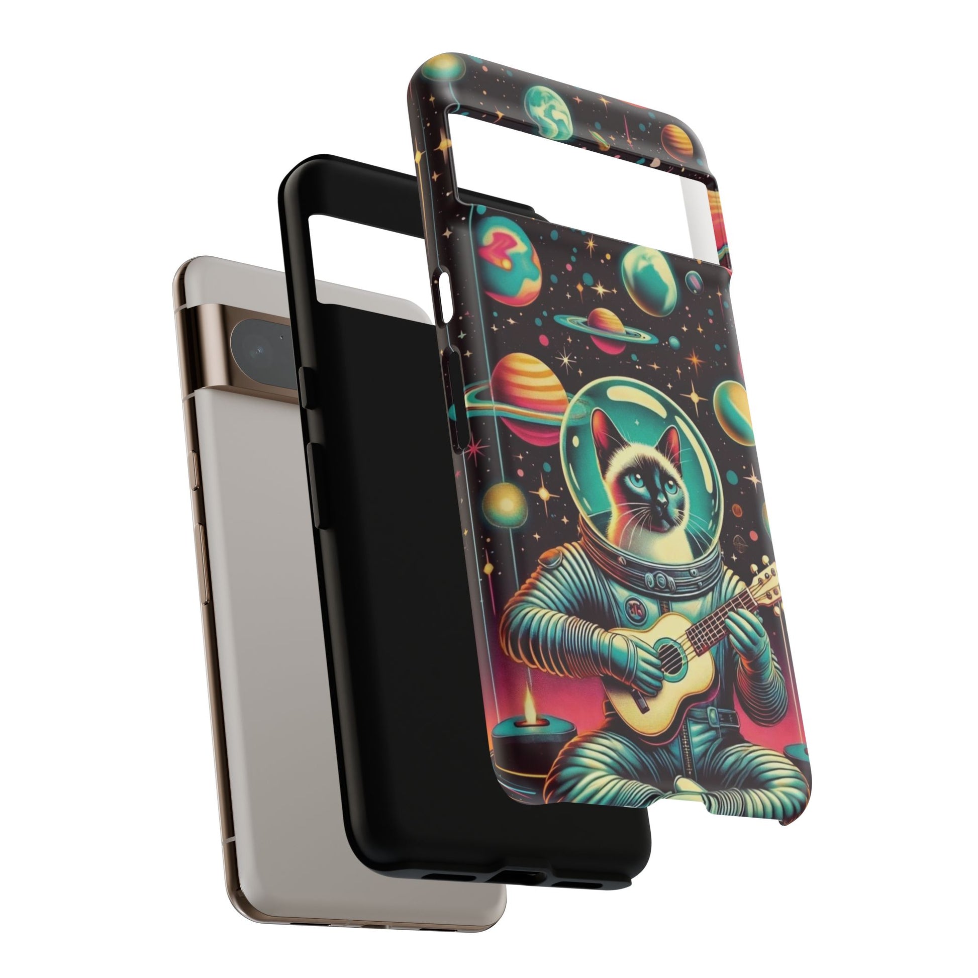 This Astrocat Guitar Phone Case features a unique design that combines cats and guitars, sure to appeal to music-loving cat enthusiasts. Made with durable materials and impact-resistant construction, this phone case provides excellent protection against drops and tears. Perfect for adults looking to show off their quirky style while keeping their phone safe and secure. Ideal for gift-giving during birthdays, holidays, or any special occasion.
