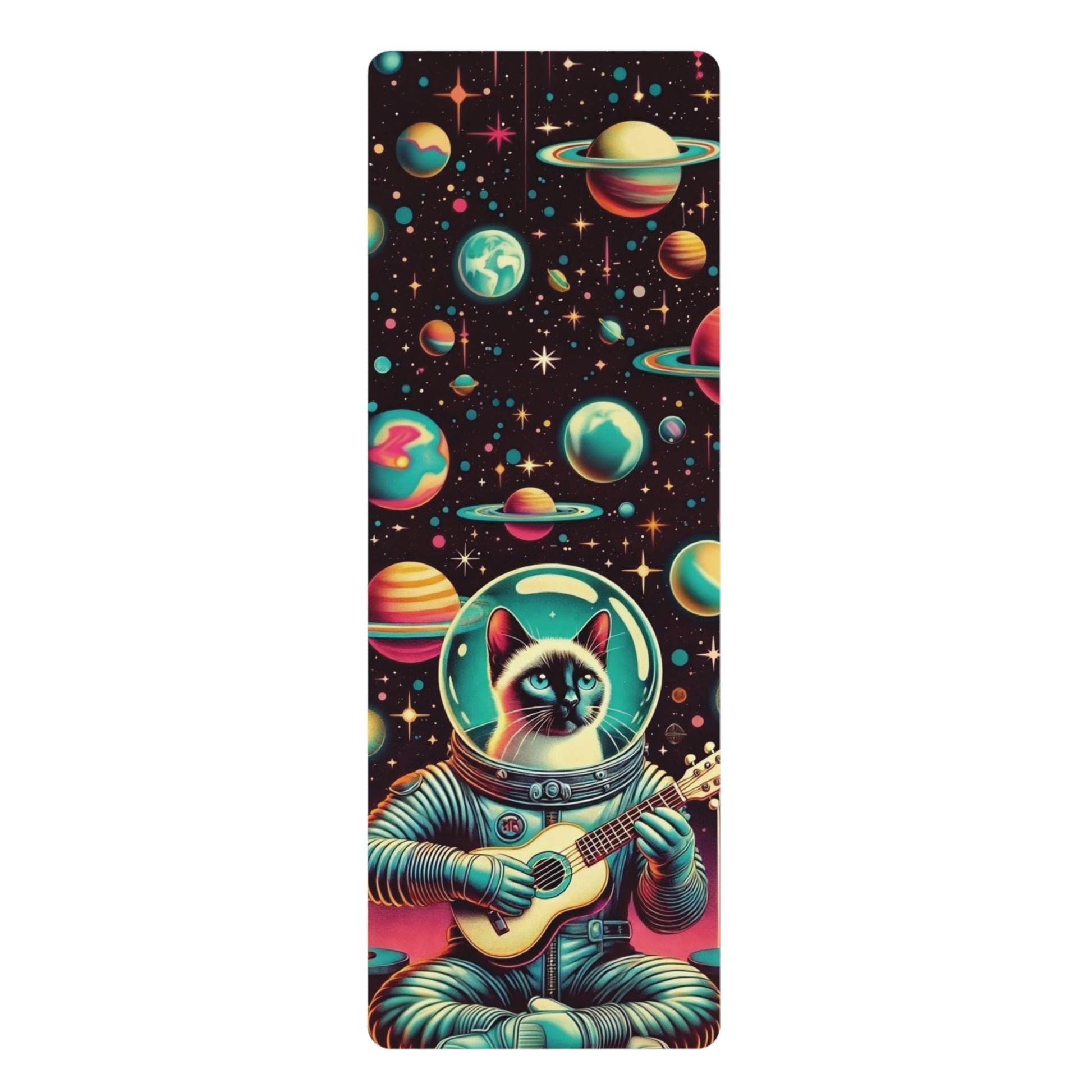This Guitar Astrocat Yoga Mat is perfect for anyone looking to add some fun and whimsy to their yoga practice. The vibrant edge-to-edge print features a cool cat playing the guitar among the stars, giving off a playful and relaxed vibe. Great for yoga enthusiasts who want to make a statement and stand out during their practice. Perfect for gifting during birthdays, holidays, or any special occasion.