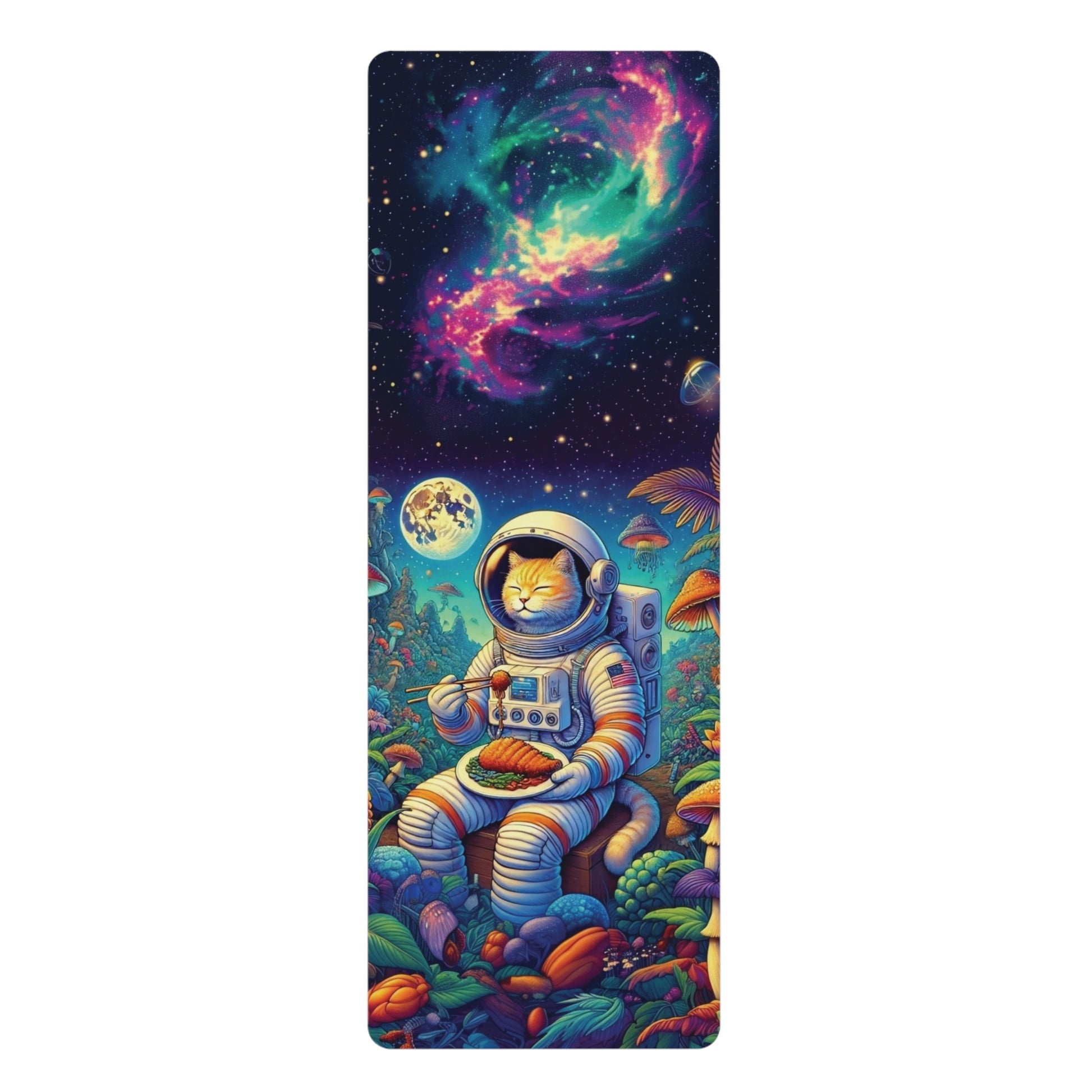 This Katsu 3 Astrocat Yoga Mat features a unique design that adds a fun and cheerful vibe to your yoga practice. With its anti-slip backing and lightweight material, it's perfect for yoga enthusiasts of all levels. Great for cat lovers and those looking to add a pop of personality to their workout routine. Ideal for yoga practices, meditation sessions, and stretching exercises.