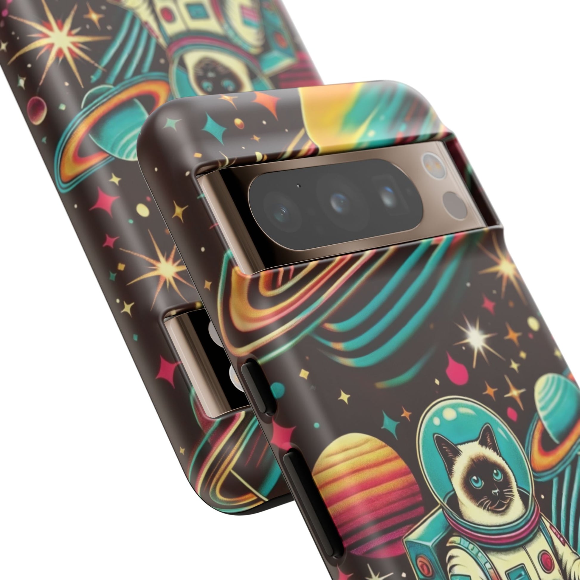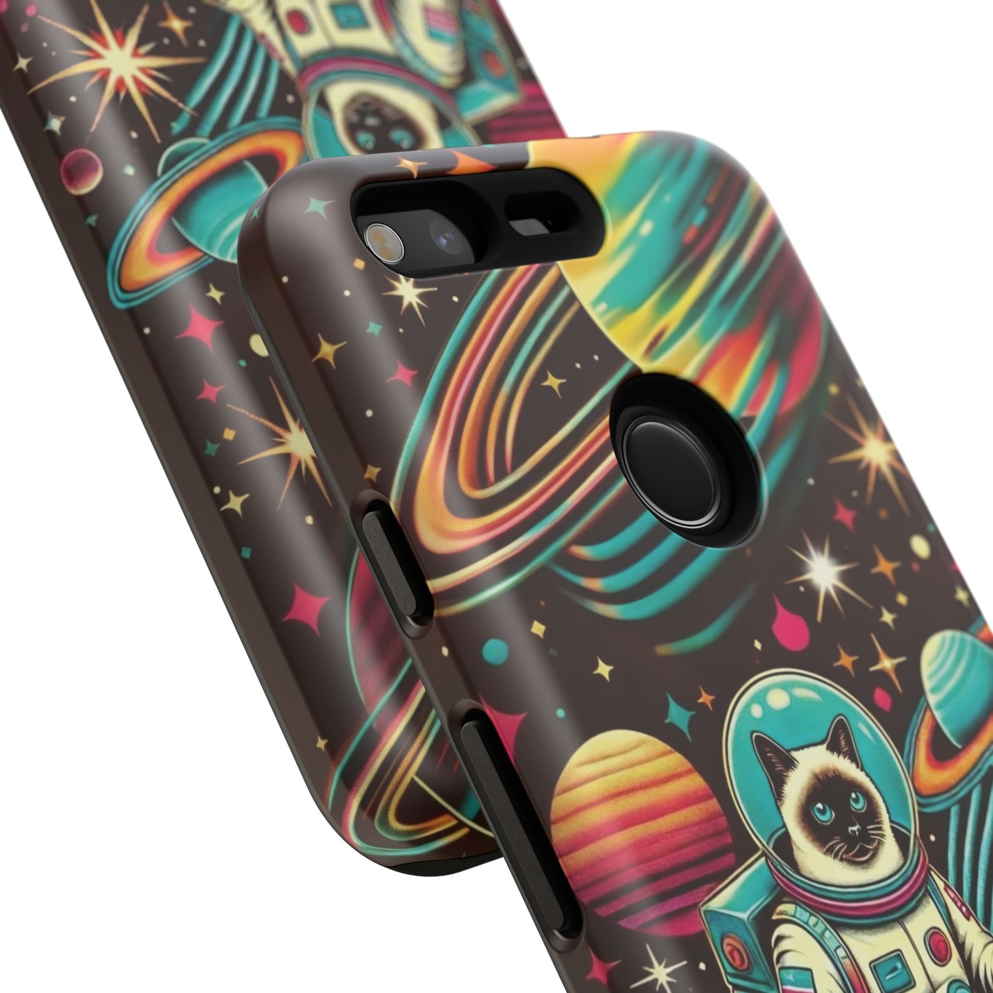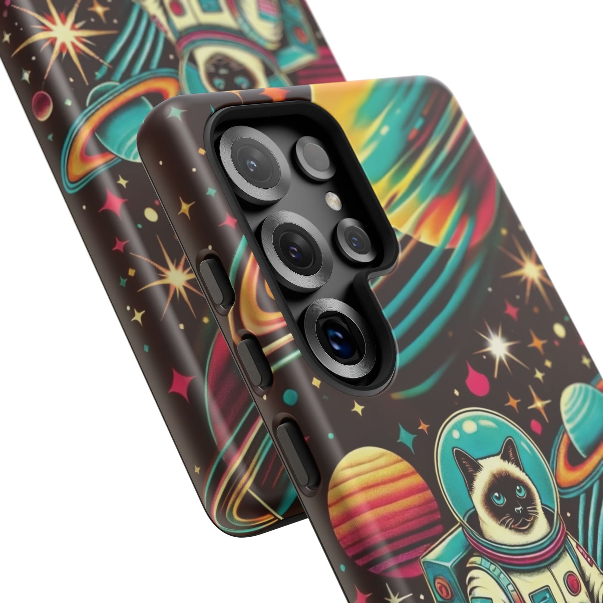 The Keys Astrocat Phone Case is a durable and impact-resistant phone case featuring a fun and quirky design of a cat with keys floating in space. It provides excellent protection against drops and tears while adding a touch of whimsy to your everyday life. Perfect for cat lovers and those who enjoy unique and artsy accessories. Ideal for gifting on birthdays, holidays, or special occasions.