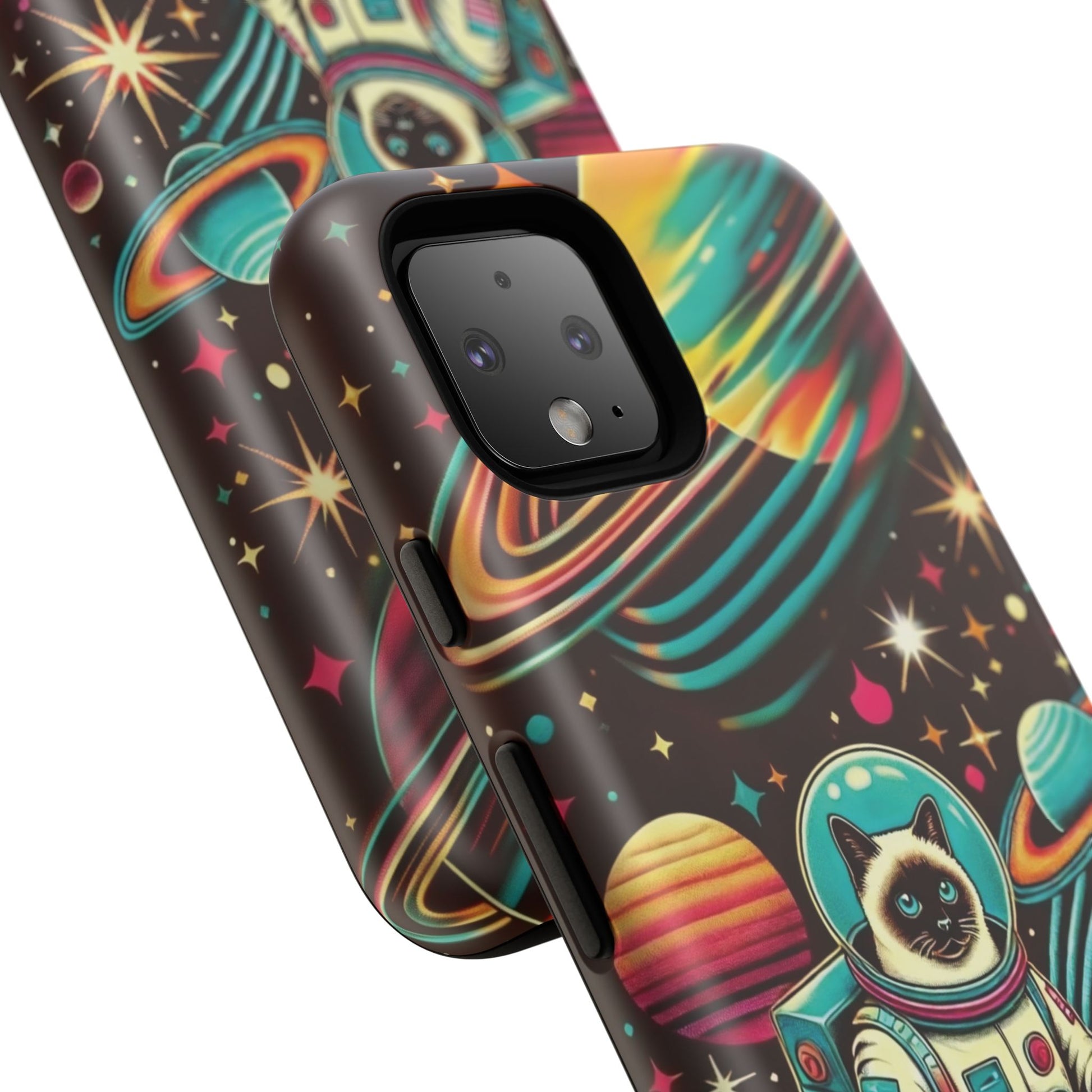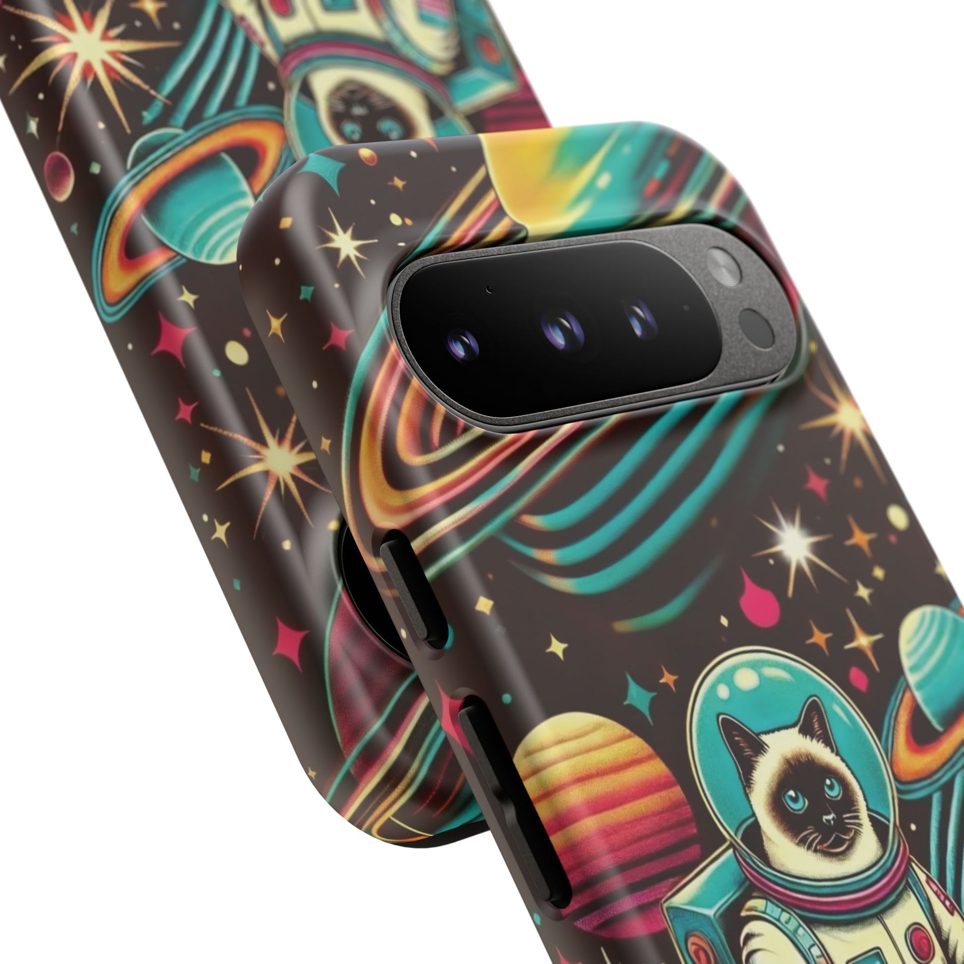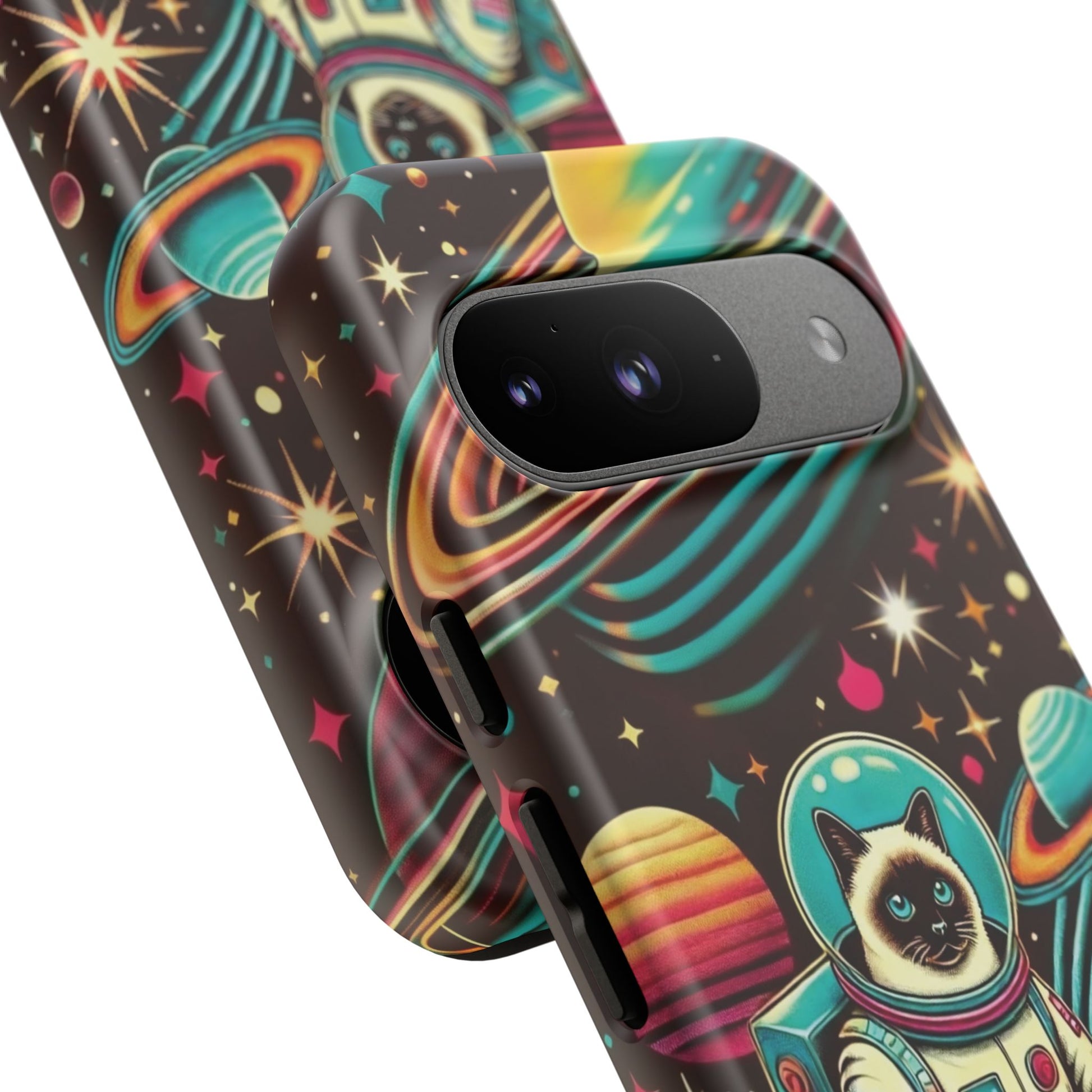 The Keys Astrocat Phone Case is a durable and impact-resistant phone case featuring a fun and quirky design of a cat with keys floating in space. It provides excellent protection against drops and tears while adding a touch of whimsy to your everyday life. Perfect for cat lovers and those who enjoy unique and artsy accessories. Ideal for gifting on birthdays, holidays, or special occasions.
