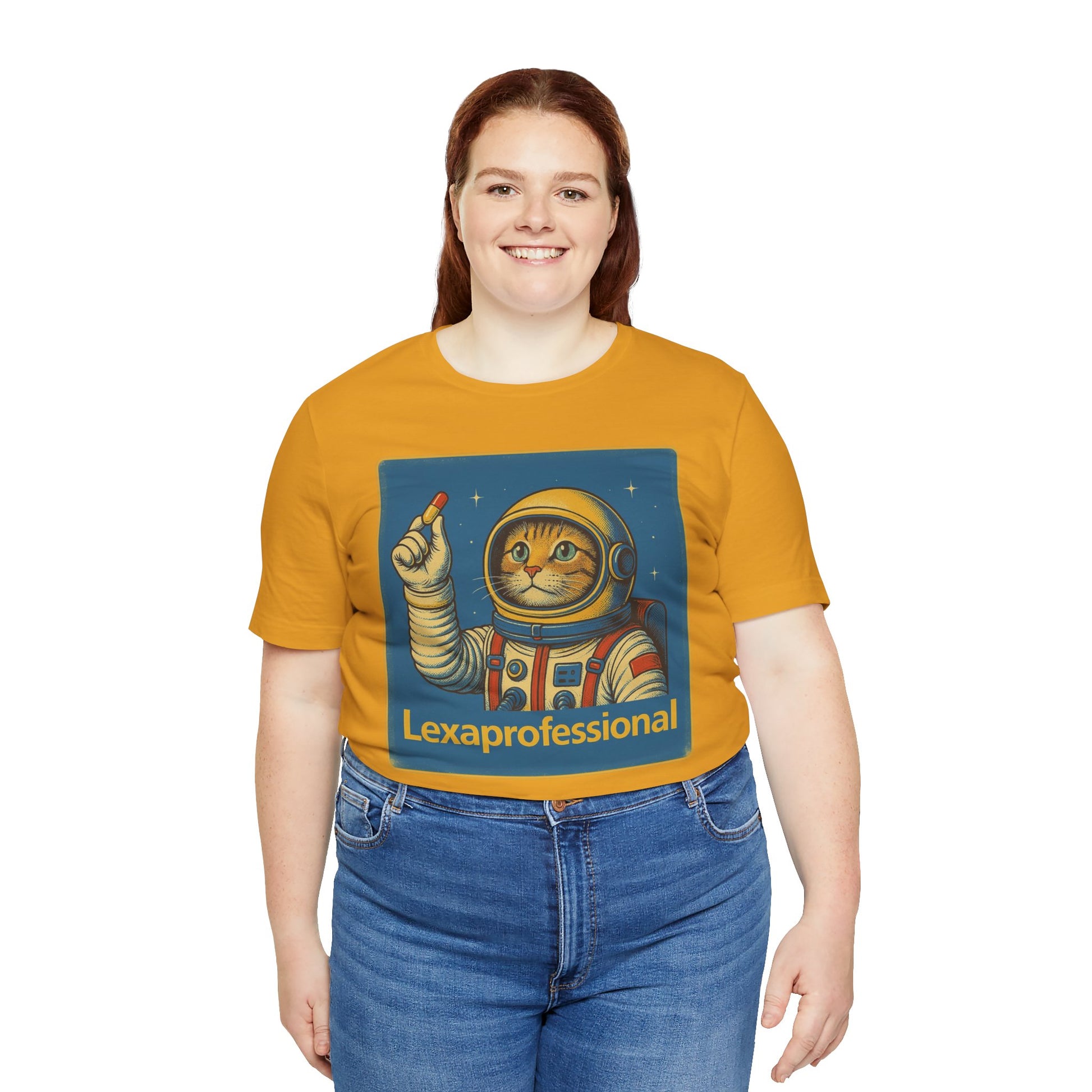 Stay on trend with this Lexaprofessional Astrocat Tee, featuring a unique design that combines professionalism with a touch of fun. Made with 100% Airlume combed and ring-spun cotton, this lightweight tee is perfect for everyday wear, whether you're at work or relaxing at home. The retail fit and crew neckline add a classic touch that's versatile for various settings. Ideal for cat lovers and those with a quirky sense of style, this tee is perfect for casual days out or as a statement piece for holidays and special occasions.