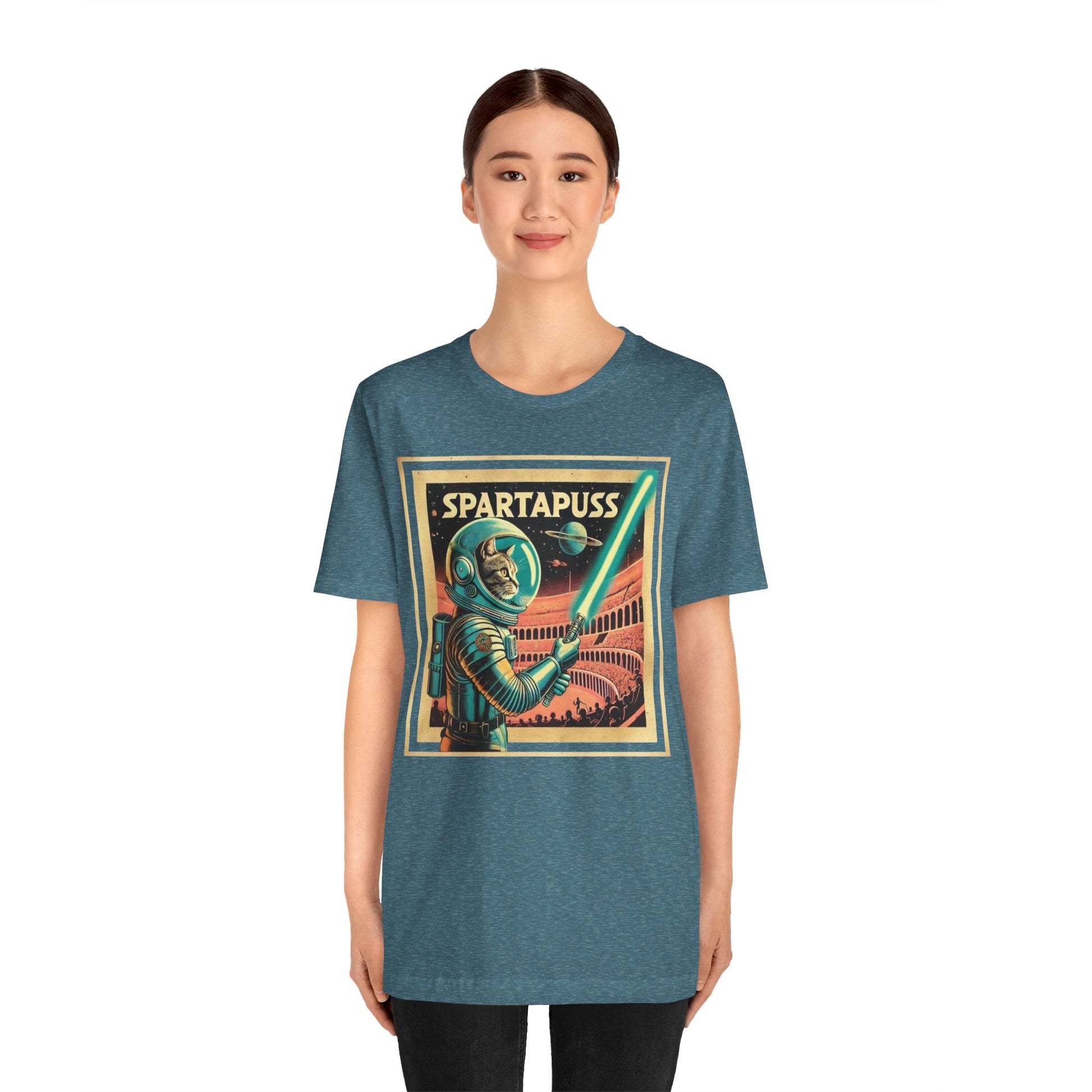 Embrace the whimsical and mystical vibes with this Spartapuss Astrocat Tee. Perfect for cat lovers, space enthusiasts, and anyone who enjoys a unique twist on classic designs. Ideal for casual wear, lounging, or as a statement piece for gatherings and events. Great for gifting on birthdays, holidays, and special occasions.